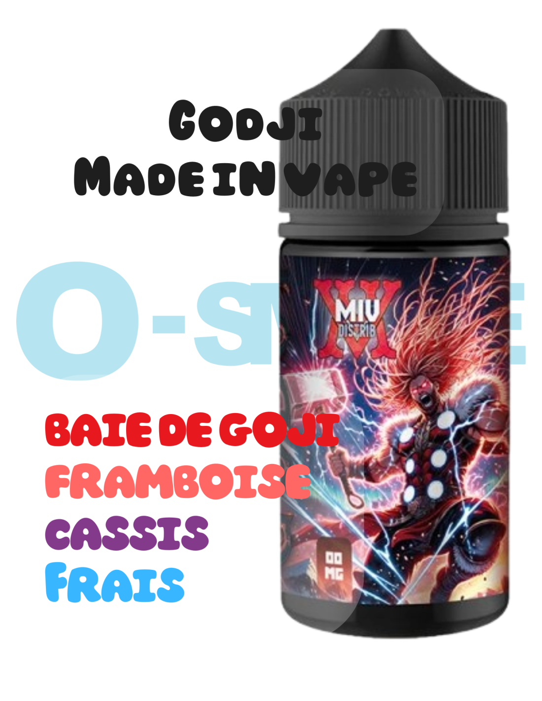 Le Godji est un e-liquide français de la gamme Miv Distrib par Made In Vape, offrant une expérience de vape fruitée et rafraîchissante. Cette création associe des saveurs de baie de goji, de framboise et de cassis, le tout sublimé par une note de fraîcheur intense.