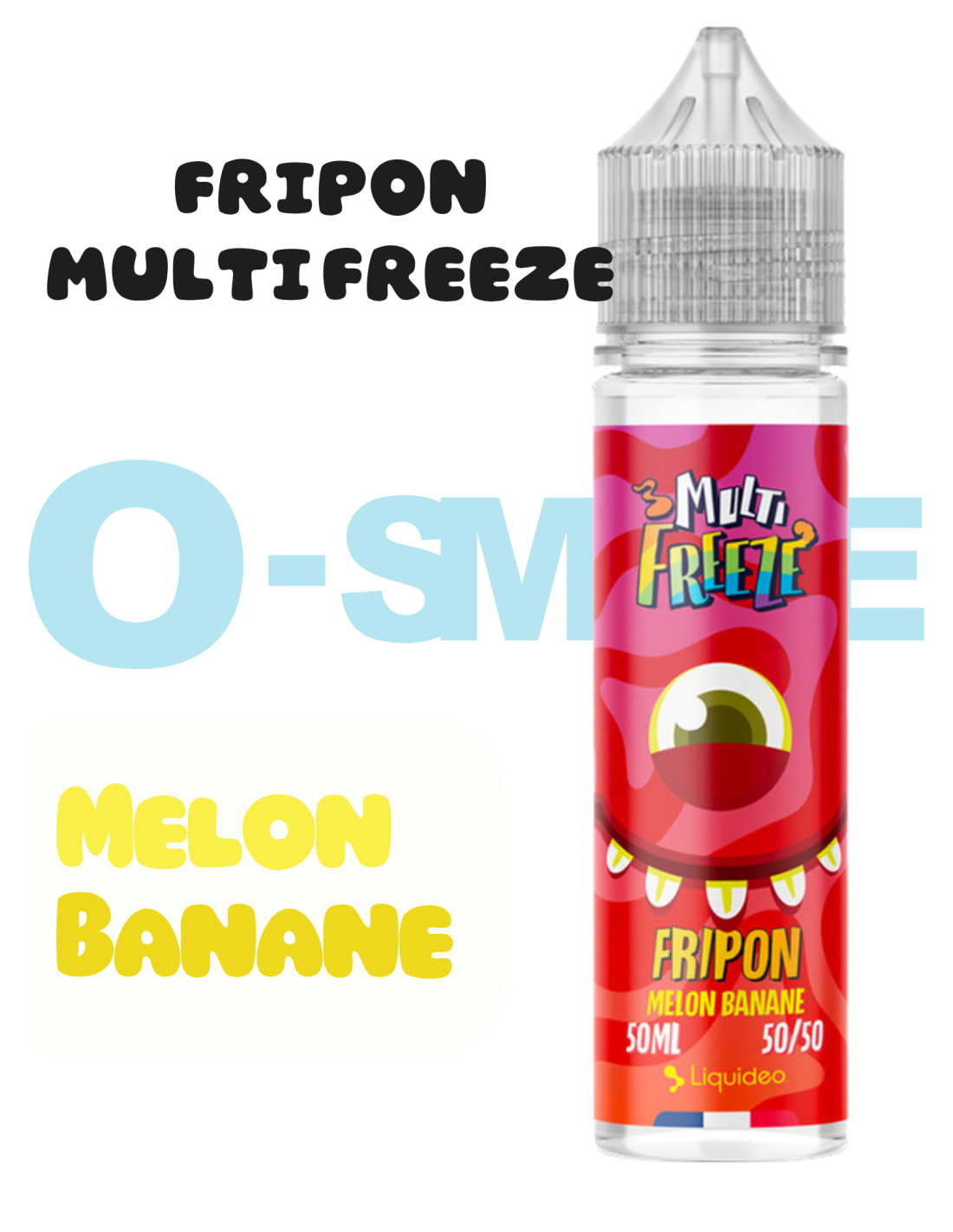 Fripon 50 ml de la gamme Multi Freeze par Liquideo propose un duo fruité associant le melon et la banane. Cette combinaison offre une vape ronde, douce et légèrement sucrée, construite autour de deux fruits emblématiques.